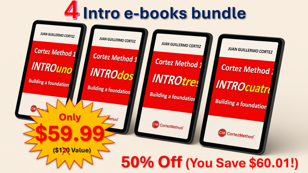 This bundle includes all four Introductory eBooks of the Cortez Method. Review the material daily, practice it out loud, and set yourself on the path to becoming conversational in Spanish. All rights reserved to the author and publisher.